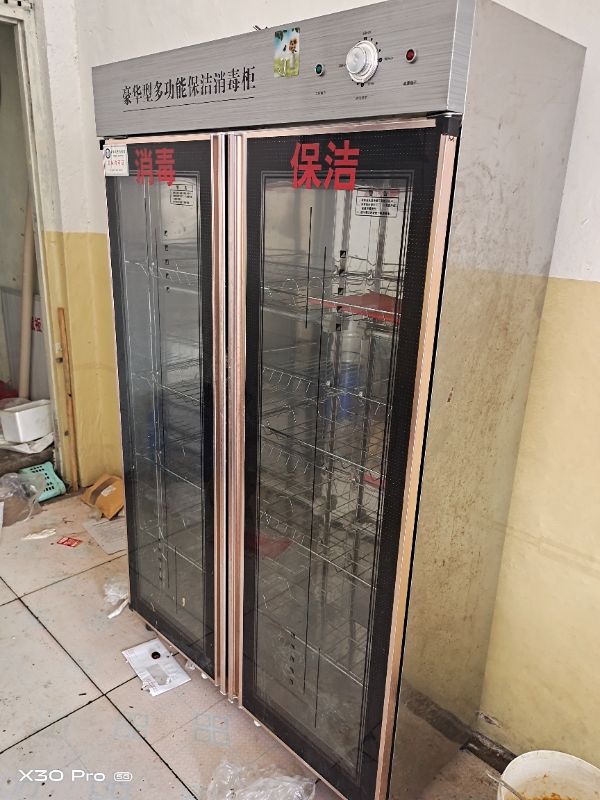 转让一台九成新消毒柜,一台8成新冰柜,几张桌椅板凳