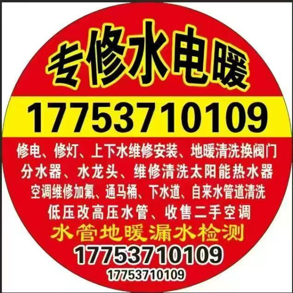 专业修水管17753710109 专业修电,修灯,修上下水 ,通马桶下水道,换阀门水龙头软管,水管漏水检测维修,水钻打孔,瓷砖开孔,木板开孔,太阳能热水器维修清洗,空调移机加氟维修,热水器不出热水维修,暖气不热,暖气漏水维修,空调回收,墙皮脱落起皮修复,瓷砖修补,马桶维修,净水机安装维修,高压管道疏通,清洗,铺地暖,空调出租17753710109 专业水管漏水检测17753710109 油烟机反味,止逆阀安装,燃气灶维修 回收二手空调,冰箱,洗衣机,电视机17753710109 打电话给我时,请一定说明在金乡生活网看到的,谢谢!